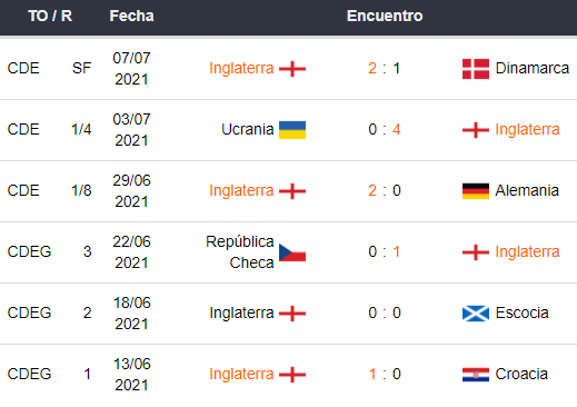 - Inglaterra también llega invicta a esta final. A diferencia de Italia que ganó cada encuentro, Inglaterra empató el partido contra Escocia en la fase de grupos.